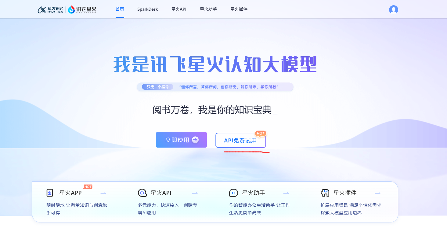 首先前往科大讯飞的星火大模型官网 讯飞星火认知大模型-AI大语言模型-星火大模型-科大讯飞 (xfyun.cn)
